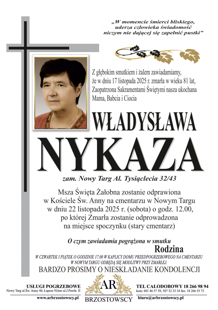 Władysława Nykaza - Nekrologi - podhale24.pl