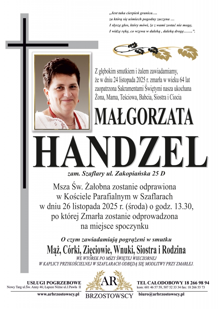 Małgorzata Handzel - Nekrologi - podhale24.pl