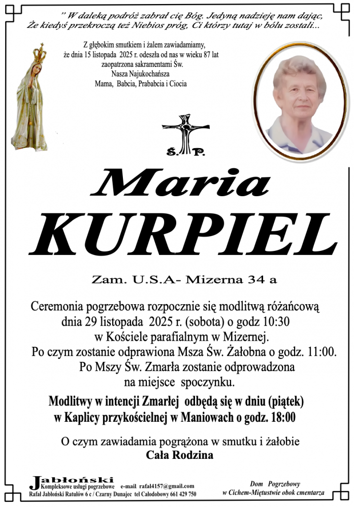 Maria Kurpiel - Nekrologi - podhale24.pl