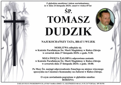 Podhale24.pl zastrzega sobie prawo do nie publikowania wspomnień, w szczególności tych nie związanych z profilem działu nekrologi, zawierających wulgaryzmy, wzywających do zachowań niezgodnych z prawem, obrażających osoby publiczne i prywatne, obrażających inne narodowości, rasy, religie itd, oraz te, bez możliwości telefonicznej lub mailowej weryfikacji ich autora.