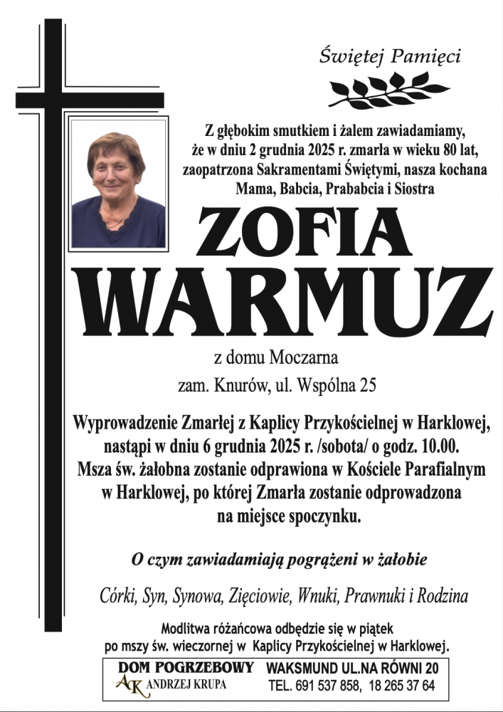 Zofia Warmuz - Nekrologi - podhale24.pl