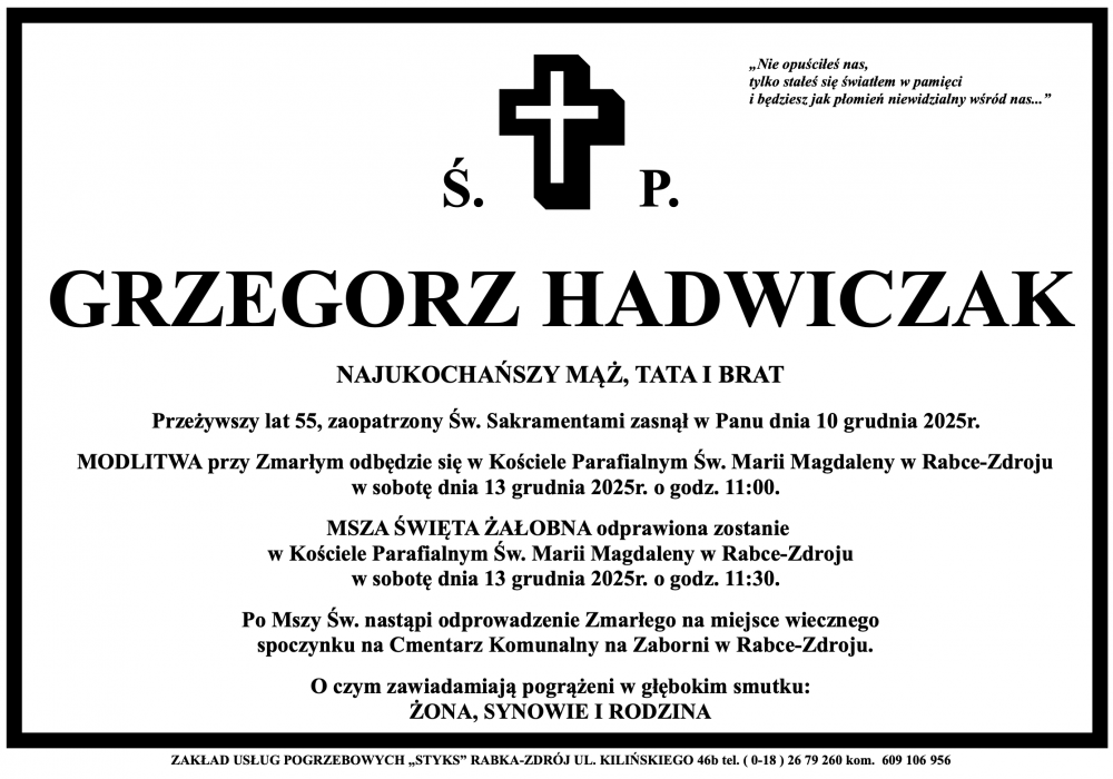 Grzegorz Hadwiczak - Nekrologi - podhale24.pl