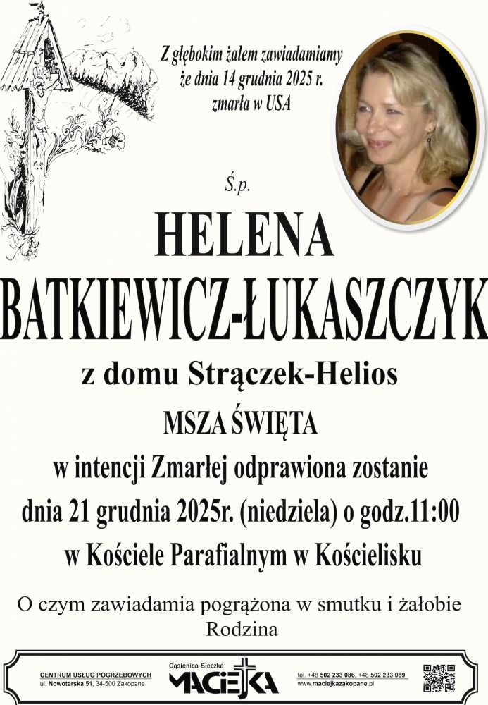 Helena Batkiewicz-Łukaszczyk - Nekrologi - podhale24.pl