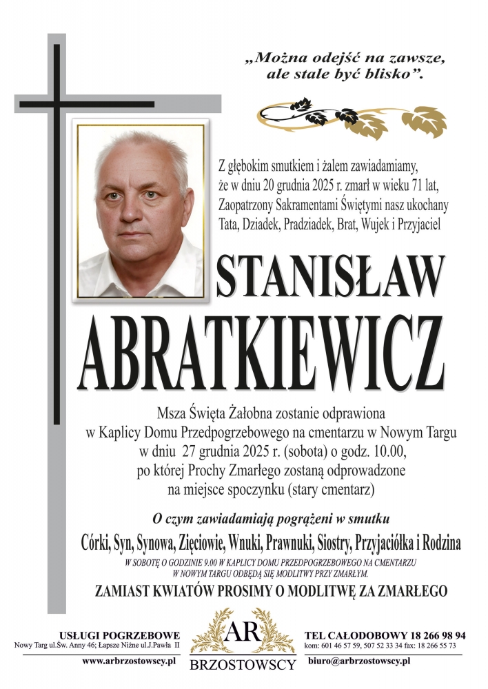 Stanisław Abratkiewicz - Nekrologi - podhale24.pl