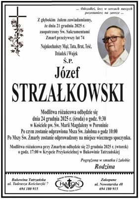 Podhale24.pl zastrzega sobie prawo do nie publikowania wspomnień, w szczególności tych nie związanych z profilem działu nekrologi, zawierających wulgaryzmy, wzywających do zachowań niezgodnych z prawem, obrażających osoby publiczne i prywatne, obrażających inne narodowości, rasy, religie itd, oraz te, bez możliwości telefonicznej lub mailowej weryfikacji ich autora.