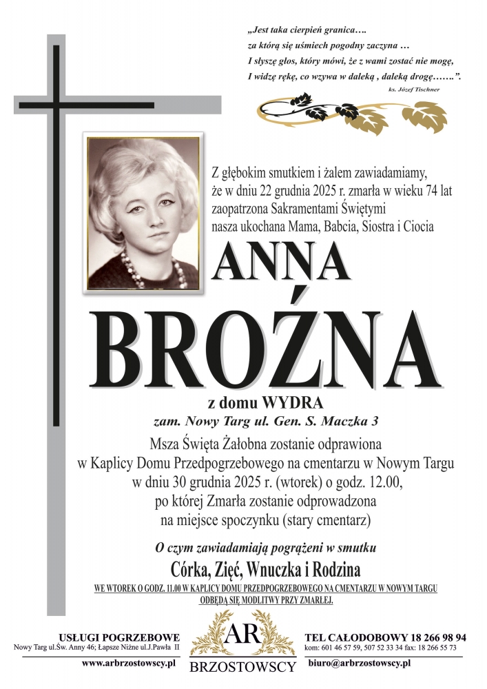 Anna Broźna - Nekrologi - podhale24.pl
