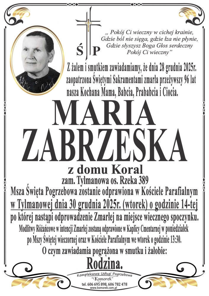 Maria Zabrzeska - Nekrologi - podhale24.pl