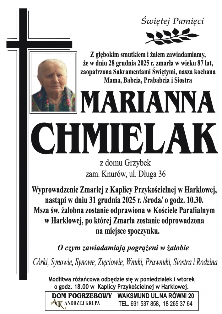 Marianna Chmielak - Nekrologi - podhale24.pl
