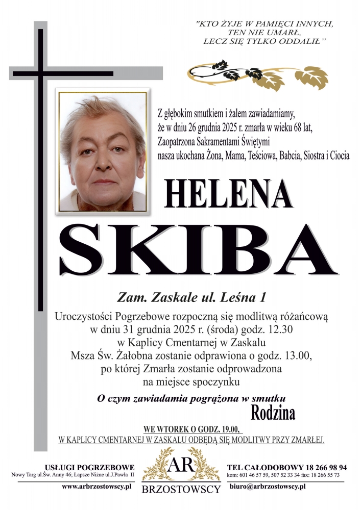 Podhale24.pl zastrzega sobie prawo do nie publikowania wspomnień, w szczególności tych nie związanych z profilem działu nekrologi, zawierających wulgaryzmy, wzywających do zachowań niezgodnych z prawem, obrażających osoby publiczne i prywatne, obrażających inne narodowości, rasy, religie itd, oraz te, bez możliwości telefonicznej lub mailowej weryfikacji ich autora.