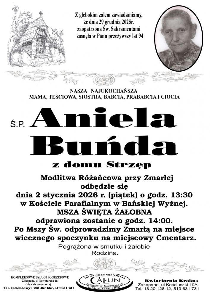 Podhale24.pl zastrzega sobie prawo do nie publikowania wspomnień, w szczególności tych nie związanych z profilem działu nekrologi, zawierających wulgaryzmy, wzywających do zachowań niezgodnych z prawem, obrażających osoby publiczne i prywatne, obrażających inne narodowości, rasy, religie itd, oraz te, bez możliwości telefonicznej lub mailowej weryfikacji ich autora.