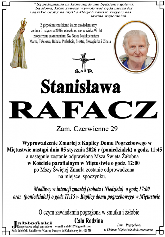 Stanisława Rafacz - Nekrologi - podhale24.pl