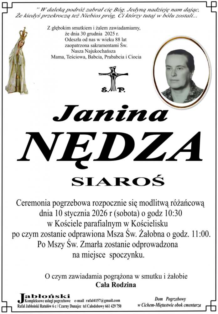 Janina Nędza - Nekrologi - podhale24.pl