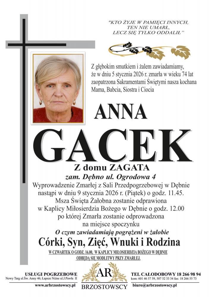 Anna Gacek - Nekrologi - podhale24.pl