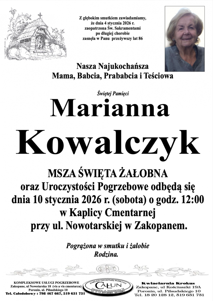 Miarianna Kowalczyk - Nekrologi - podhale24.pl