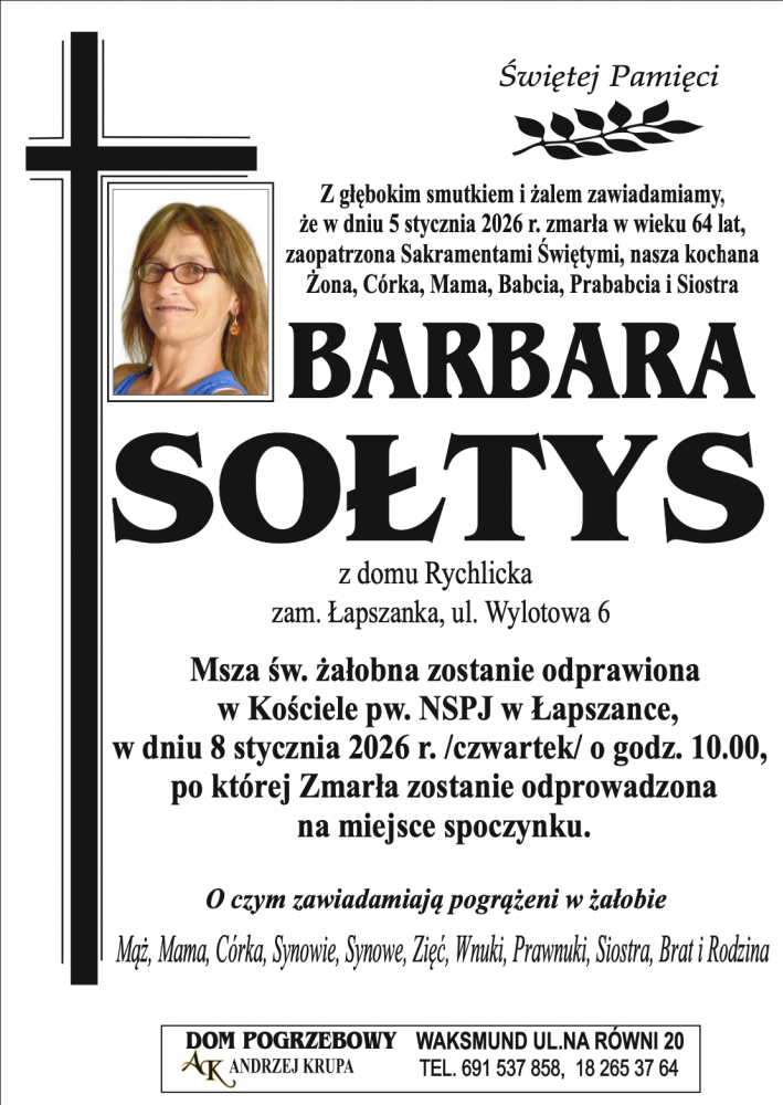 Barbara Sołtys - Nekrologi - podhale24.pl