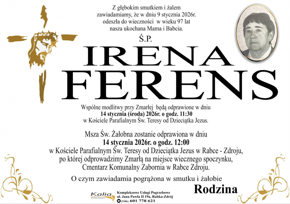 Irena Ferens - Nekrologi - podhale24.pl