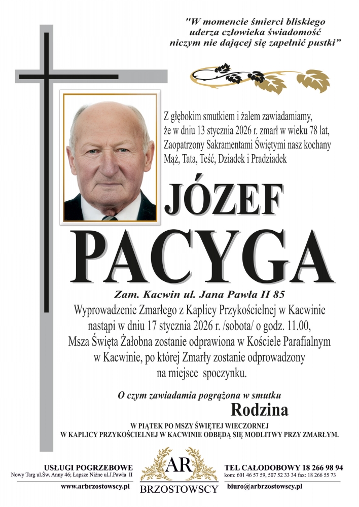 Podhale24.pl zastrzega sobie prawo do nie publikowania wspomnień, w szczególności tych nie związanych z profilem działu nekrologi, zawierających wulgaryzmy, wzywających do zachowań niezgodnych z prawem, obrażających osoby publiczne i prywatne, obrażających inne narodowości, rasy, religie itd, oraz te, bez możliwości telefonicznej lub mailowej weryfikacji ich autora.