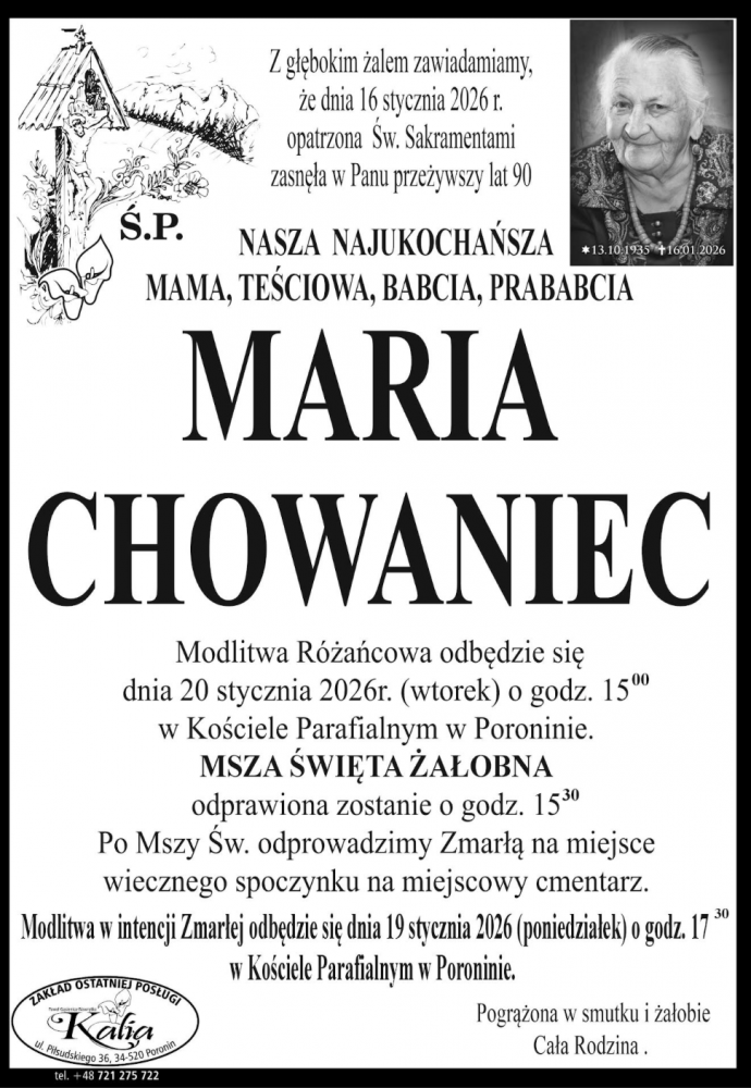 Maria Chowaniec - Nekrologi - podhale24.pl