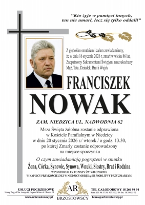 Podhale24.pl zastrzega sobie prawo do nie publikowania wspomnień, w szczególności tych nie związanych z profilem działu nekrologi, zawierających wulgaryzmy, wzywających do zachowań niezgodnych z prawem, obrażających osoby publiczne i prywatne, obrażających inne narodowości, rasy, religie itd, oraz te, bez możliwości telefonicznej lub mailowej weryfikacji ich autora.