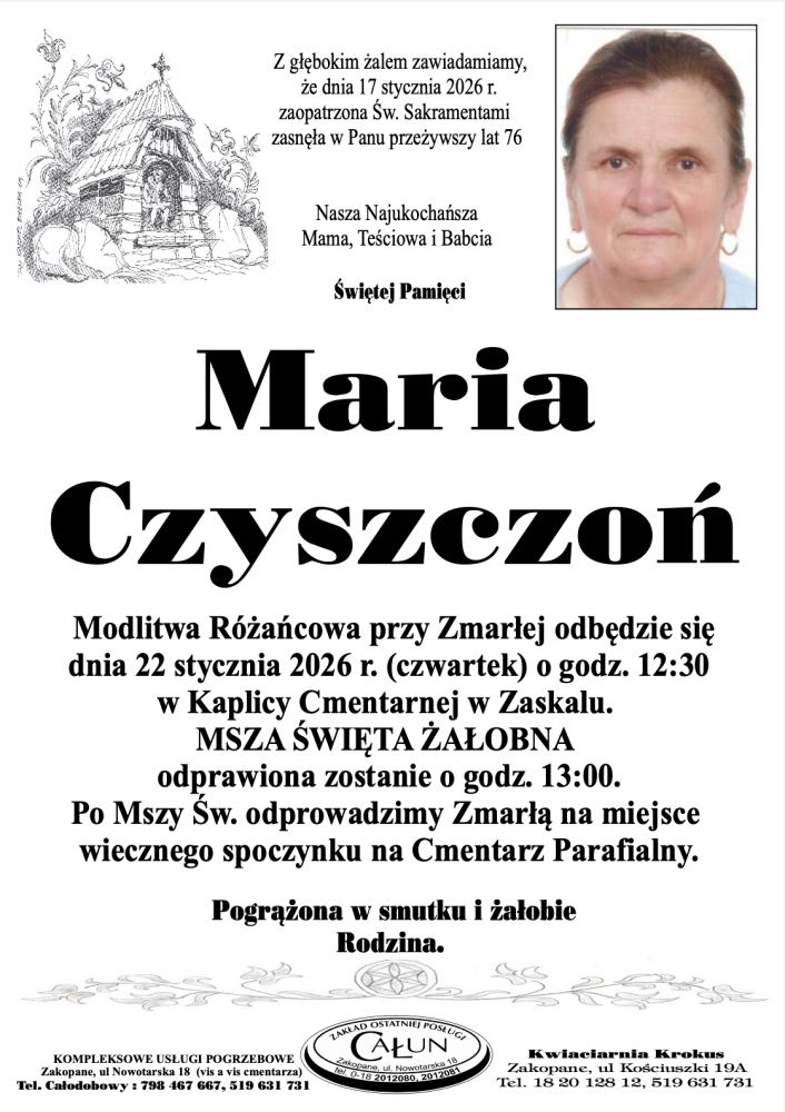 Maria Czyszczoń - Nekrologi - podhale24.pl