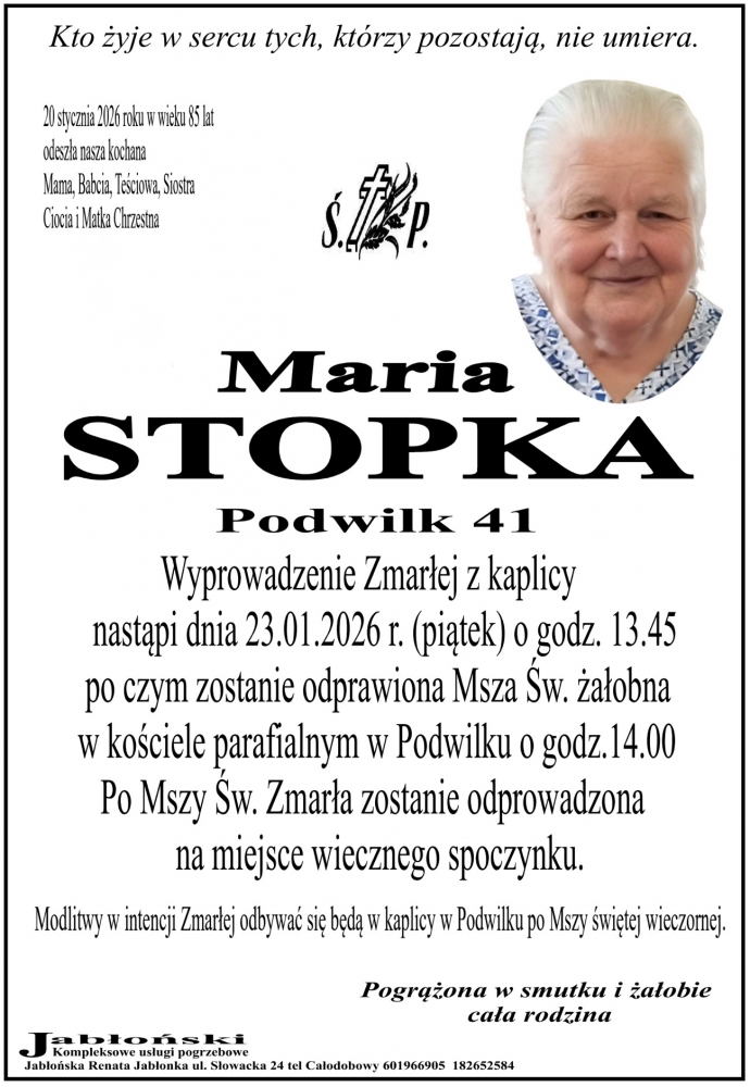 Maria Stopka - Nekrologi - podhale24.pl