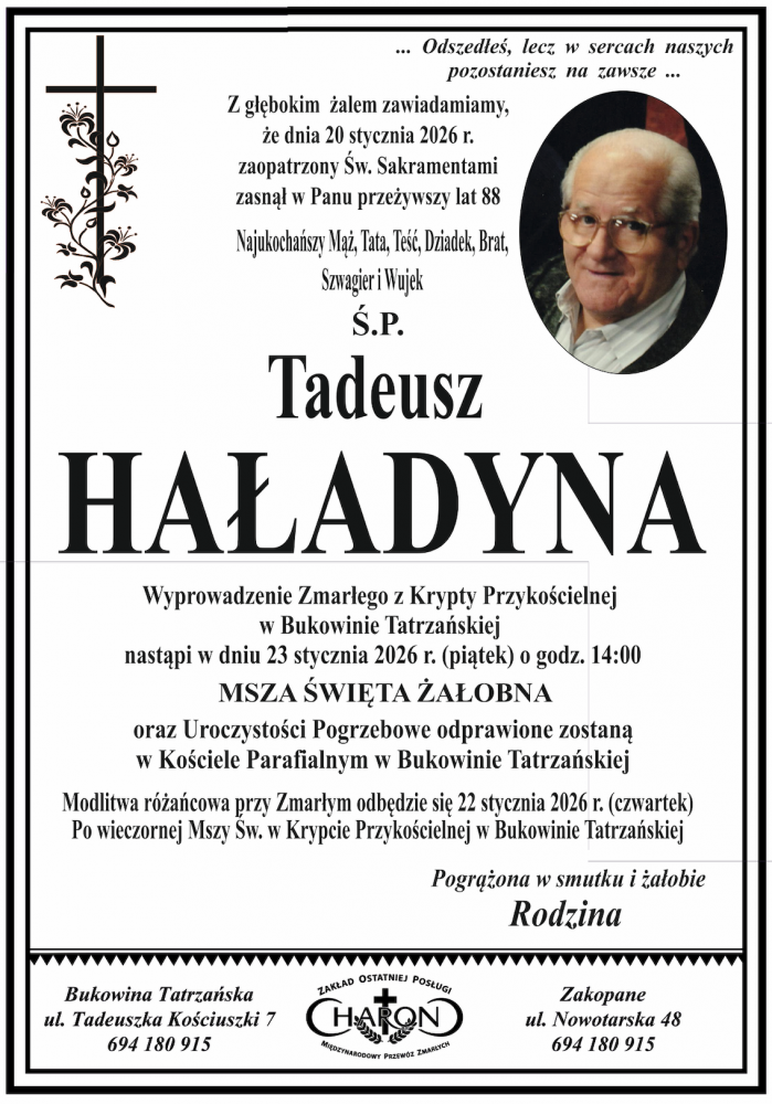 Tadeusz Haładyna - Nekrologi - podhale24.pl
