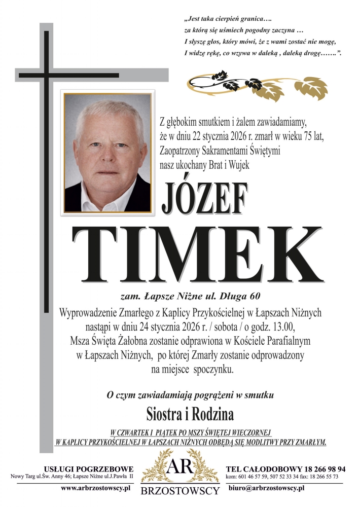 Józef Timek - Nekrologi - podhale24.pl