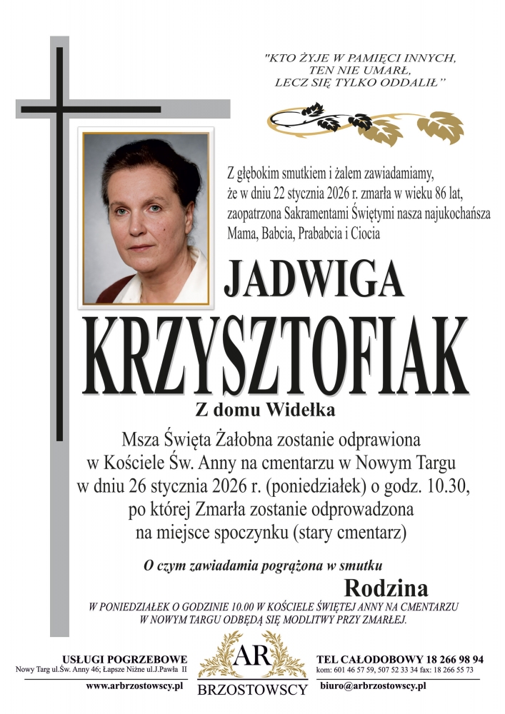 Jadwiga Krzysztofiak - Nekrologi - podhale24.pl