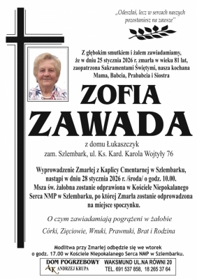 Podhale24.pl zastrzega sobie prawo do nie publikowania wspomnień, w szczególności tych nie związanych z profilem działu nekrologi, zawierających wulgaryzmy, wzywających do zachowań niezgodnych z prawem, obrażających osoby publiczne i prywatne, obrażających inne narodowości, rasy, religie itd, oraz te, bez możliwości telefonicznej lub mailowej weryfikacji ich autora.