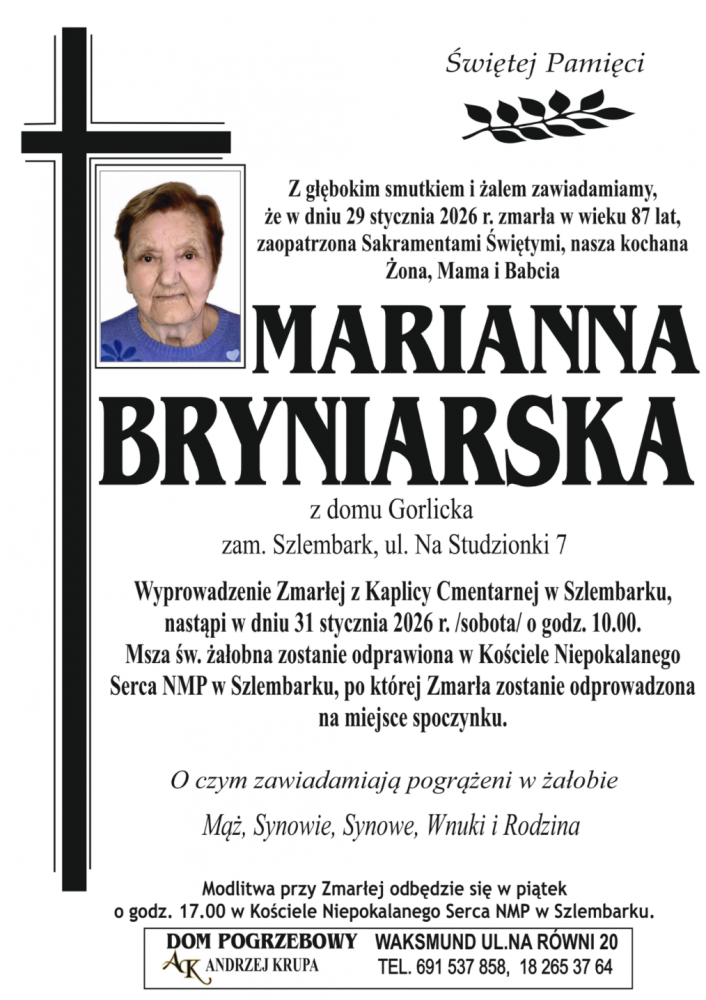 Marianna Bryniarska - Nekrologi - podhale24.pl