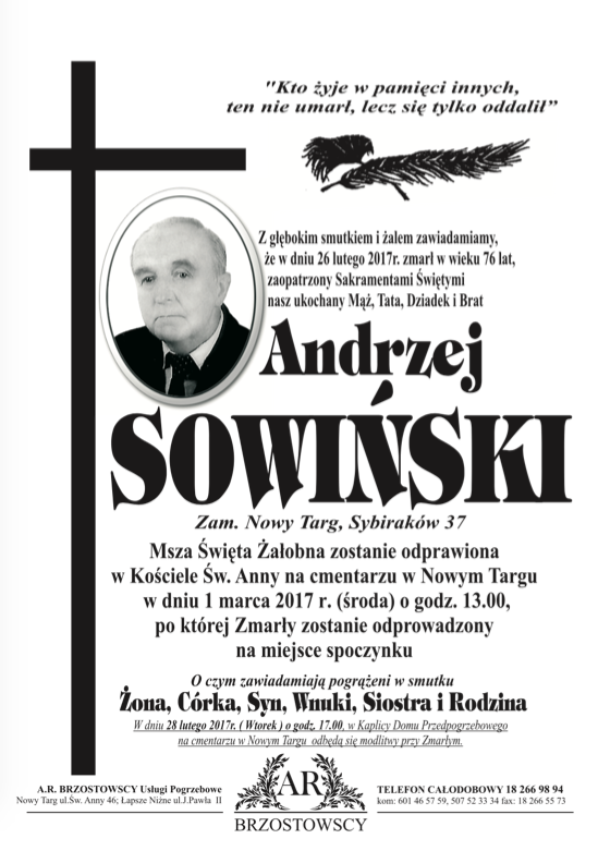 Podhale24.pl zastrzega sobie prawo do nie publikowania wspomnień, w szczególności tych nie związanych z profilem działu nekrologi, zawierających wulgaryzmy, wzywających do zachowań niezgodnych z prawem, obrażających osoby publiczne i prywatne, obrażających inne narodowości, rasy, religie itd, oraz te, bez możliwości telefonicznej lub mailowej weryfikacji ich autora.